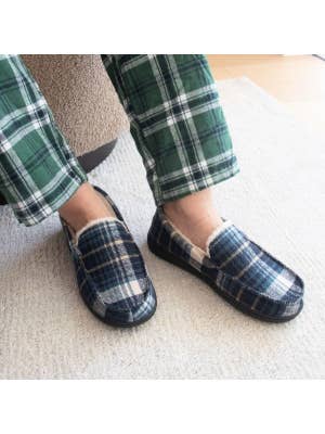 10. SnuggUps Men's Moccasin Navy Plaid