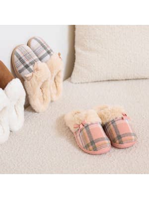 6. SnuggUps Women's Slide Cream Plaid